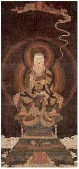 私たちにとって、馴染み深い仏さまのおひとり、このお地蔵さん=地蔵菩薩は、梵語で「クシティガラバッハ」と呼ばれ、釈尊の入滅後、五十六億七千万年後にあらわれて、世界を救済するとされる弥勒菩薩が出現するまでの無仏の期間、衆生の人々を教え導き、救ってくださる仏さまとして、平安時代の頃から、盛んに信仰されはじめました(左は、醍醐寺所蔵の国宝、地蔵菩薩画像)。